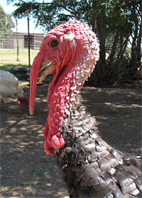 I know a lot of you feel guilt about attending a Thanksgiving celebration where turkey is served.  Rest assured that there is something you can do to help offset your guilt…Adopt-A-Turkey!  For 25 years now Farm Sanctuary has been rescuing turkeys at Thanksgiving time (and all year round).  Farm Sanctuary’s Adopt-A-Turkey project: